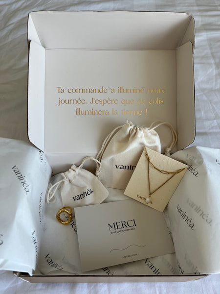 Super contente de ma commande Vaninéa ! Les bijoux sont canons, hyper agréables à porter et tiennent super bien même sous la douche. Je recommanderai sans hésiter !